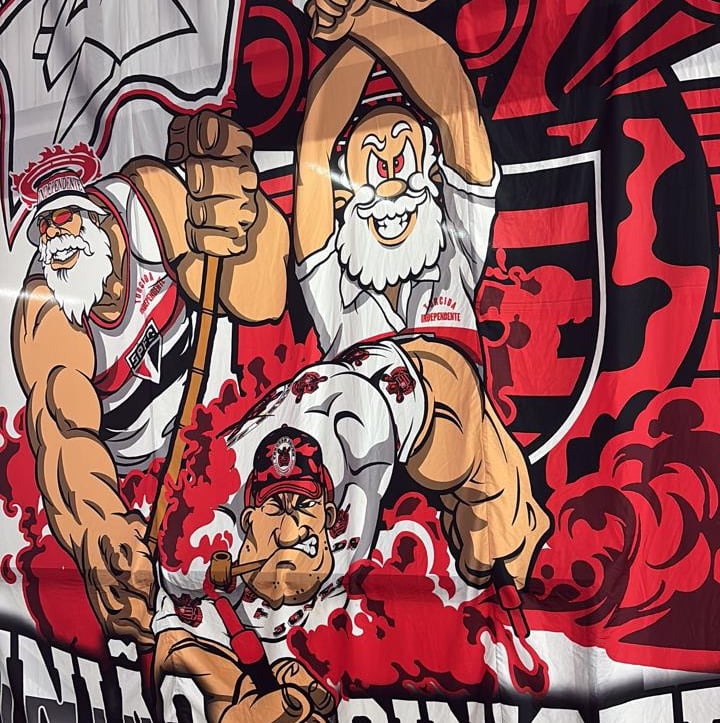 De lá, fui encontrar uns amigos na sede da Independente, que fica de frente ao portão da arquibancada leste, onde costumamos ir. É usual algum show por ali antes dos jogos, principalmente nas partidas contra rivais cujas torcidas sejam “aliadas”, como se denominam. O show da noite era do Katinguelê, representante da era de ouro do pagode paulista dos anos 90 e 2000, era de ouro do São Paulo Futebol Clube, era de quando éramos reis, donos do mundo, soberanos.